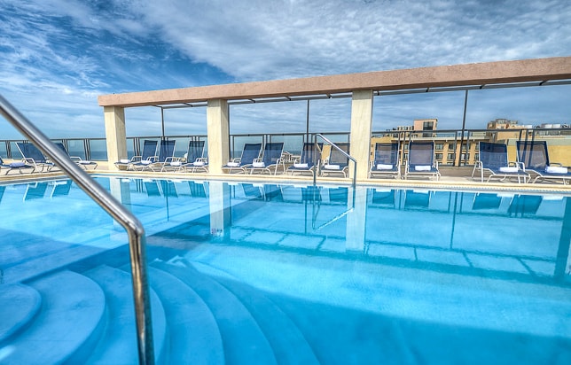 Stogo baseinas 8-ajame aukšte, atidarytas gegužės–spalio mėnesiais (jei leidžia oras), su nuostabiais vaizdais į Ballutos įlanką.